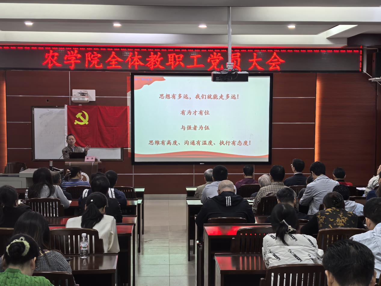 为深入学习贯彻党的二十届三中全会和2024年全国教育大会精神,进一步引导教职工党员解放思想、担当作为,11月26日,db真人体育官网召开全体教职工党员大会,会议的主题是“不忘初心、牢记使命”。db真人体育官网领导班子成员、全体教职工党员参加会议。会议由农公司党委书记袁涛主持并上党课。