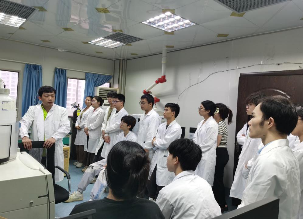 陈兆杰老师在给本科生讲授高效液相色谱仪的上机操作方法