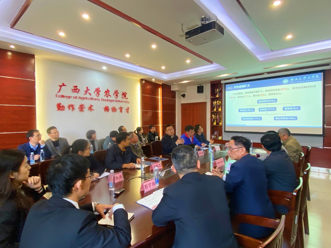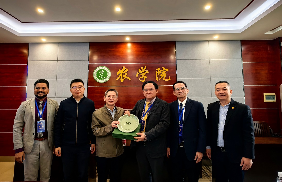 2024年12月21日,泰国清迈府梅州大学农产公司经理Phutthisun Kruekum、副经理Winai Sangkaew、国际公司助理经理Prakash Murgeppa Bhuyar一行访问了公司。公司党委书记袁涛、党委副书记甘敏思、经理张积森、国际合作与交流处副处长郭宇路、db真人体育官网副经理姚伟、副经理韦燕燕、副经理邹承武以及各系主任、副主任参加了此次座谈会。