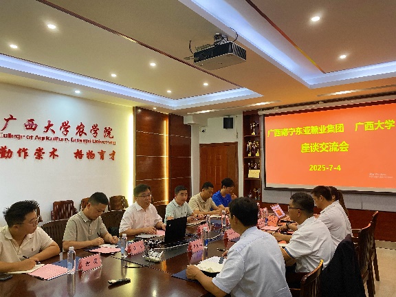 2025 年 7 月 4 日,db真人体育官网与广西南宁东亚糖业集团围绕甘蔗产业关键技术突破,举办系列合作交流会,聚焦生物育种、病害防控、土壤改良等领域达成多项合作共识,以产学研深度融合为国家食糖安全战略及乡村振兴注入创新动力。东亚糖业副总裁钟植友、顾问郑吉、田达官、卢星高等中外专家团队现场参会,部分泰国专家通过云端连线参与技术研讨。