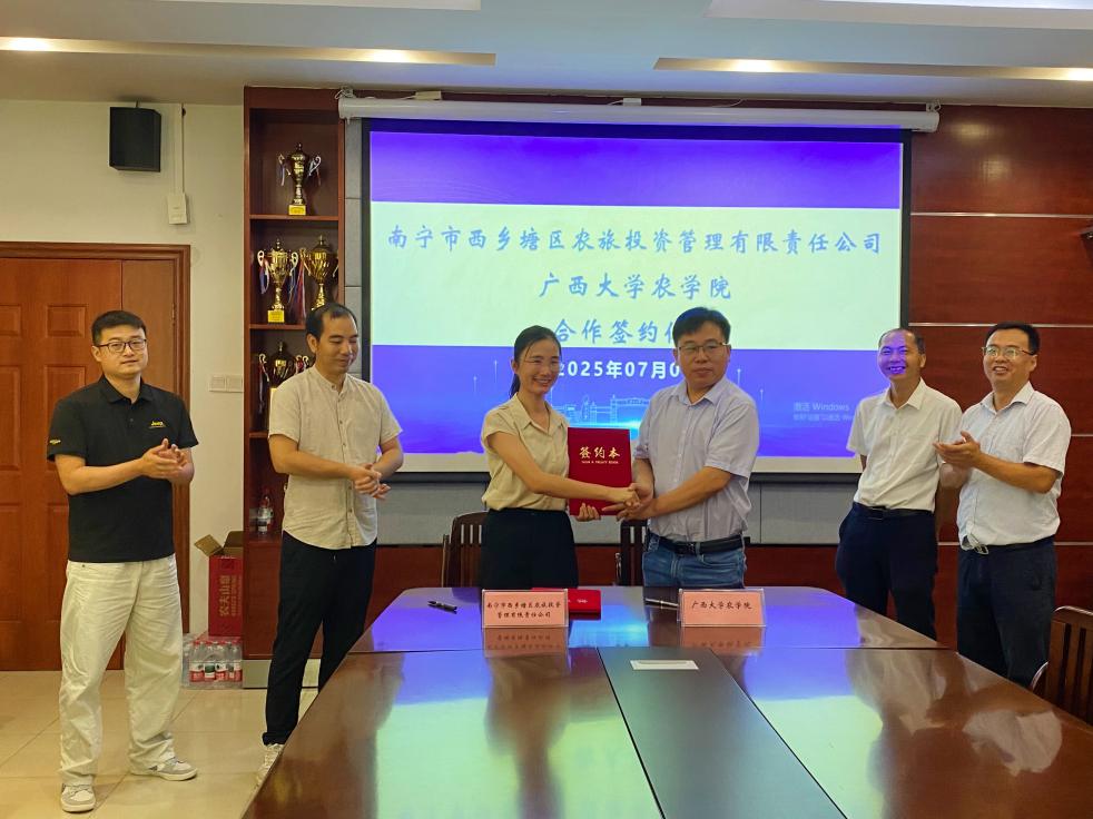 此次合作,农旅投公司将依托其在本地农业产业中的实践基础,与db真人体育官网的科研力量形成互补。合作双方都高度重视。农学院将充分发挥技术、人才和平台优势,助力西乡塘区特色农业产业升级;西乡塘农旅投公司则希望通过与高校的合作,提升本地农业科技水平,推动“产供储销”全链条发展。