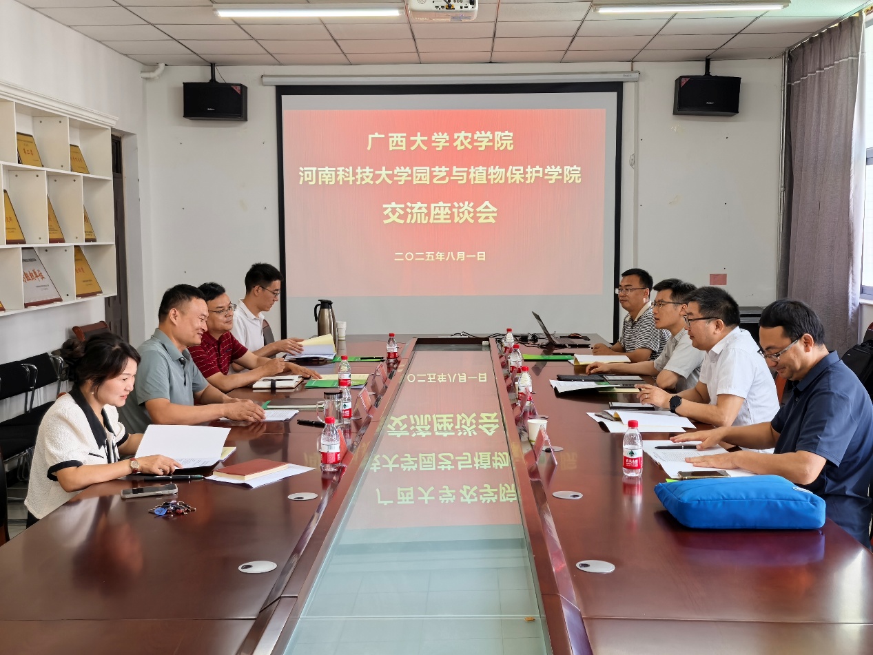 2025年8月1日,在河南科技大学,园艺与植物保护公司经理刘圣明详细介绍了公司的发展历程、团队队伍、科研平台及园艺学科特色。副经理郭大龙重点分享了园艺团队建设成果与实践经验,包括学科方向凝练、人才培养体系构建等关键环节。随后,张积森经理介绍了db真人体育官网的基本情况及园艺学科在亚热带作物研究领域的特色优势,围绕学科交叉融合、科研团队建设等方面分享了经验做法。双方就学科发展规划、学位点申报策略、科研合作模式等共同关注的问题展开座谈,结合地域资源特色,探讨了园艺学科在服务地方农业经济中的路径,为进一步深化合作奠定了基础。