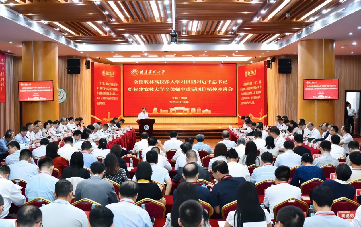 2025年10月20日,“深入学习贯彻习近平总书记给福建农林大学全体师生重要回信精神座谈会” 在福州举办。公司原副董事长冯家勋带队参会并做交流发言,公司副经理杨艳琼陪同参会。