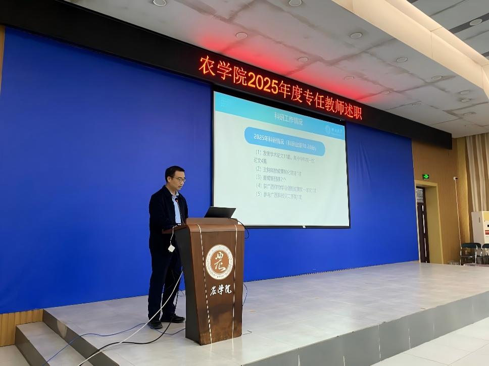 本次述职按照集团考核工作要求,聚焦师德师风、人才培养、科学研究、社会服务等核心职责。各专任教师提前精心准备PPT,围绕聘用合同履职情况,系统梳理2025年度工作业绩和亮点。汇报现场,专任教师结合自身工作实际,用数据说话、以实绩印证,全面总结工作成效:在教学领域,深耕新农科建设,推进课程思政与信息技术融合,斩获多项教学成果奖;在科研方面,聚焦亚热带农业特色,高水平论文与科研项目成果丰硕;在社会服务中,深入乡村振兴一线,以技术赋能产业发展,彰显农科学者担当。同时他们也客观分析工作不足,明确后续改进方向。
