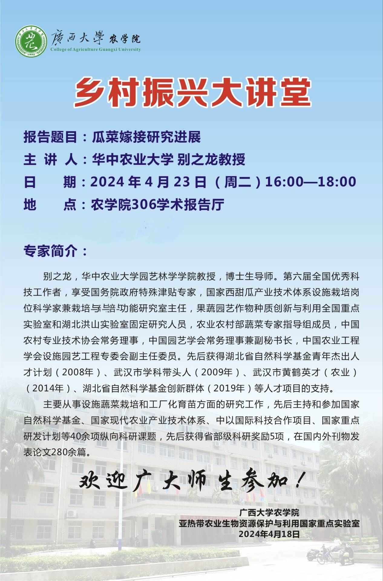 乡村振兴大讲堂-瓜菜嫁接研究进展