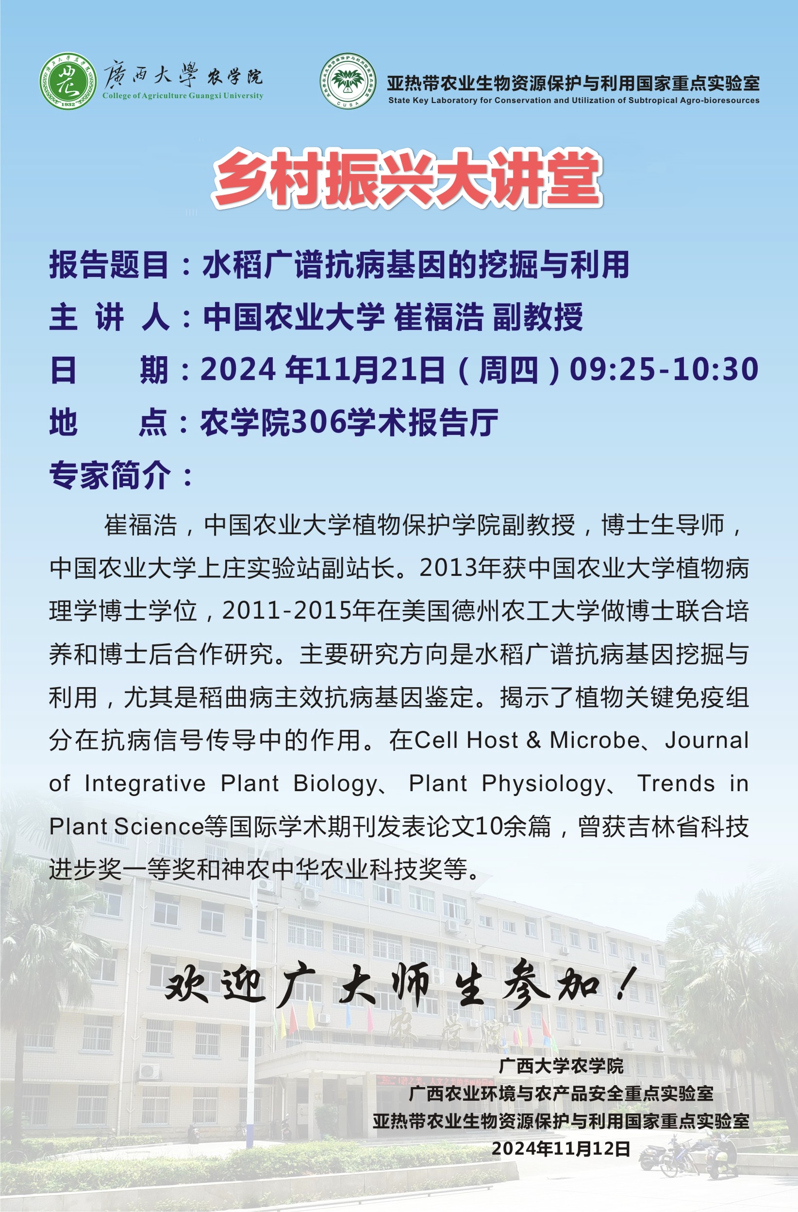 乡村振兴大讲堂-水稻广谱抗病基因的挖掘与利用-崔福浩
