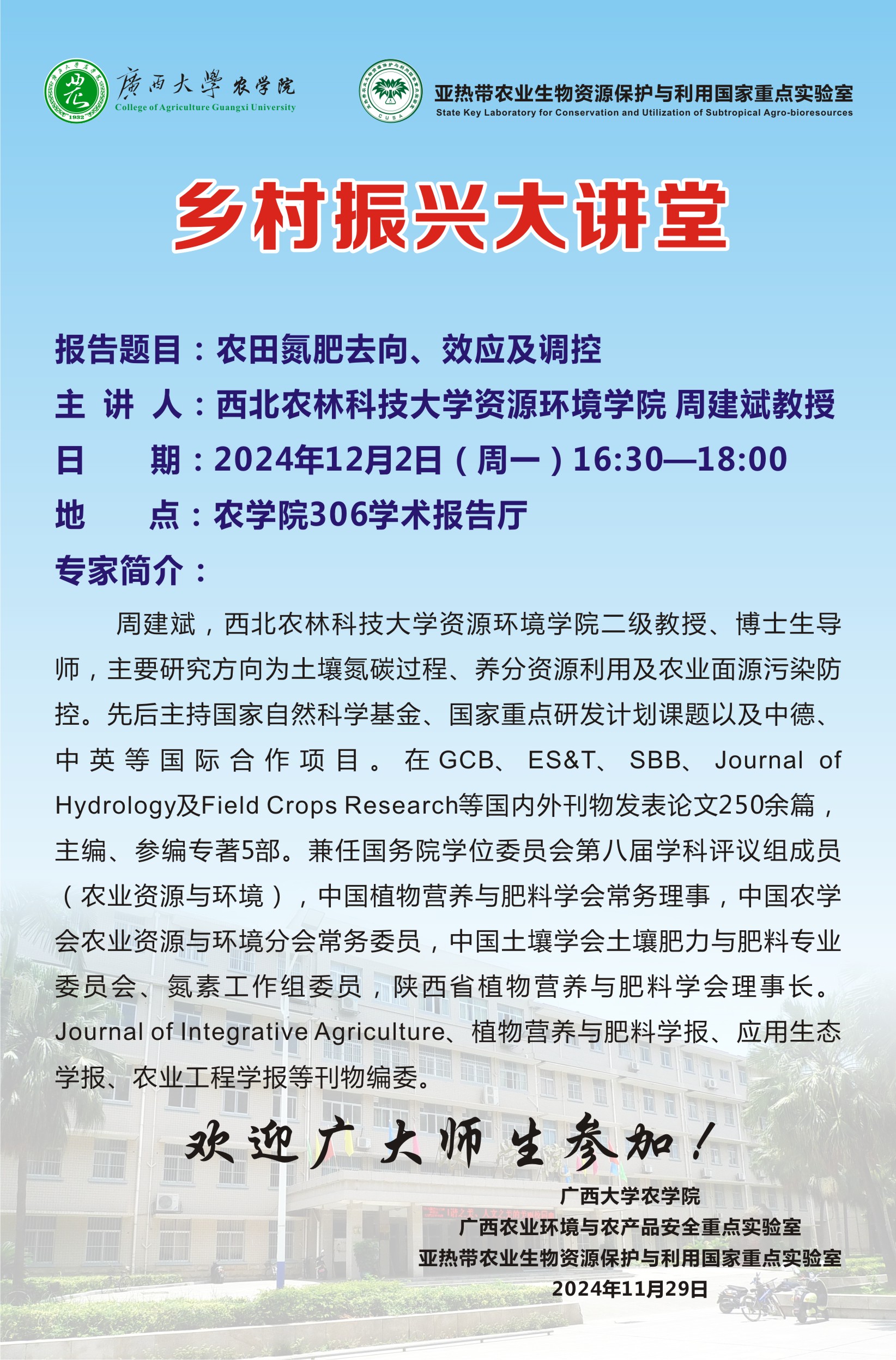 乡村振兴大讲堂-农田氮肥去向、效应及调控-周建斌
