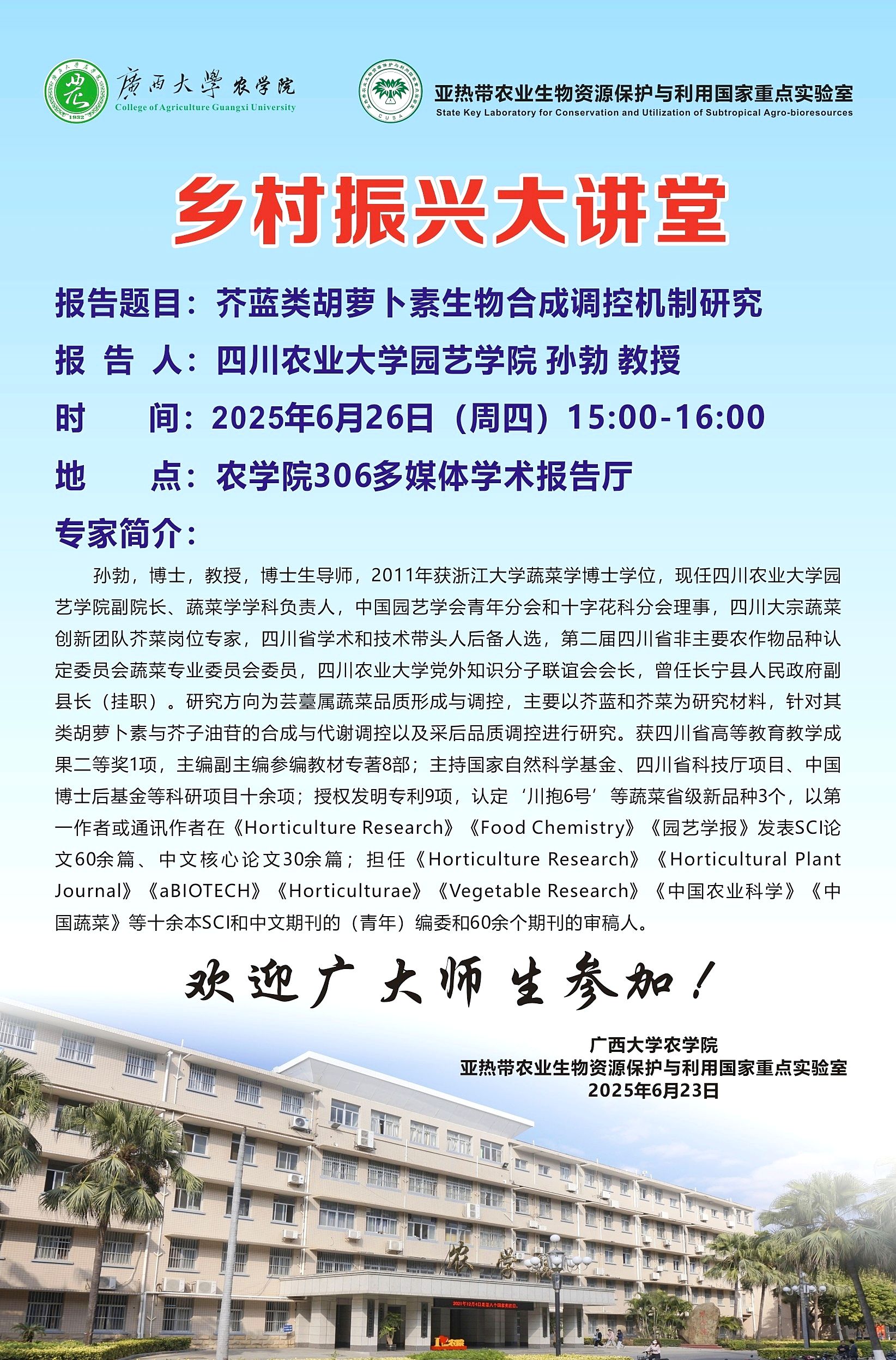 乡村振兴大讲堂-芥蓝类胡萝卜素生物合成调控机制研究报告人:四川农业大学园艺公司孙勃教授