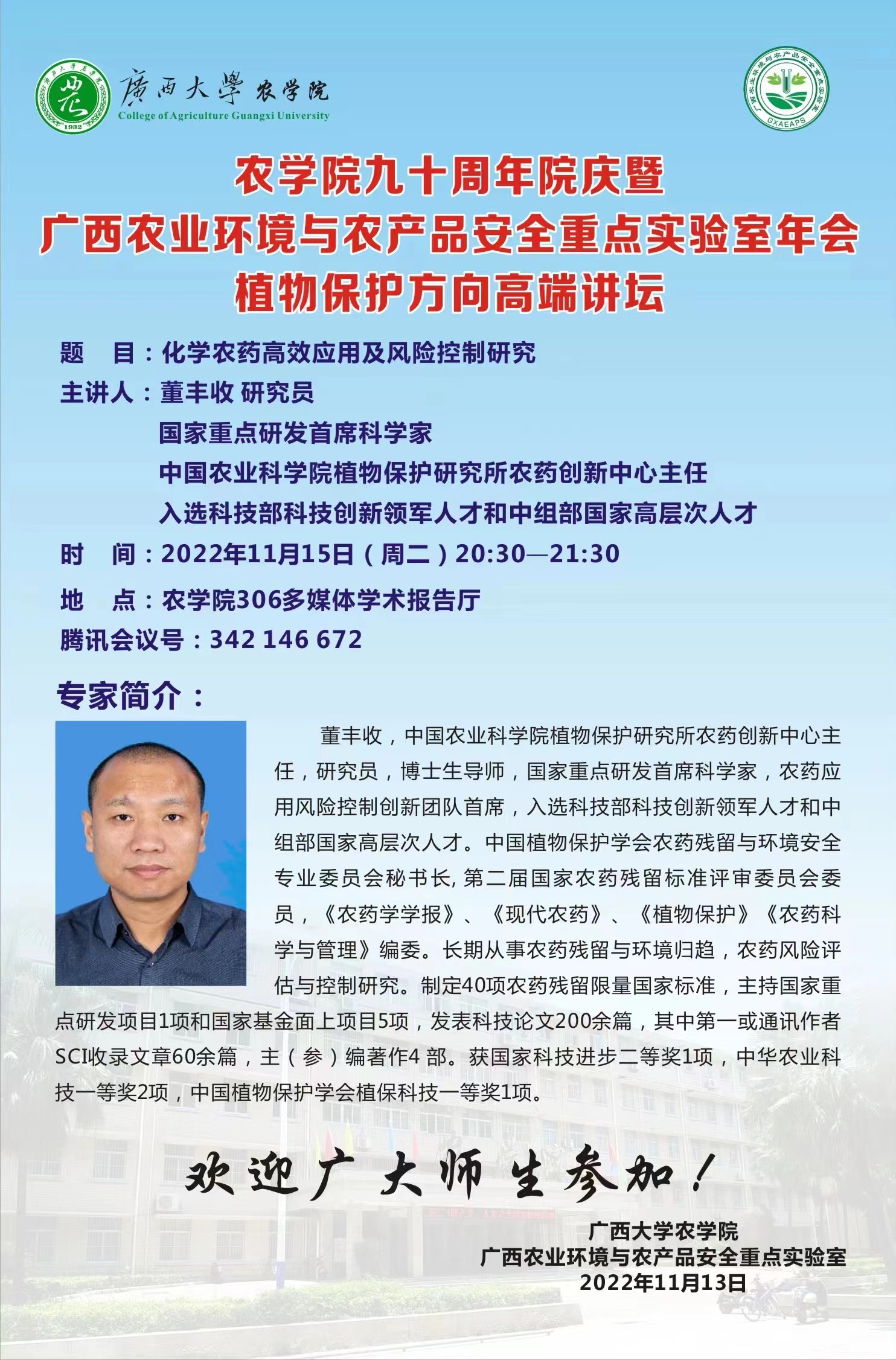 db真人体育官网建院九十周年院庆学术活动-化学农药高效应用及风险控制研究-董丰收
