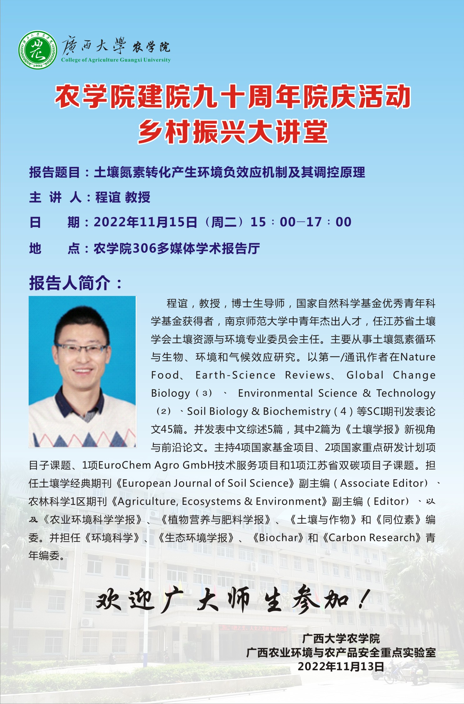 下一篇:db真人体育官网建院九十周年院庆学术活动-岩溶区土壤氮转化过程特点及其意义:以农业和自然生态系统为例植物免疫调控相关基因鉴定及功能解析--朱同彬