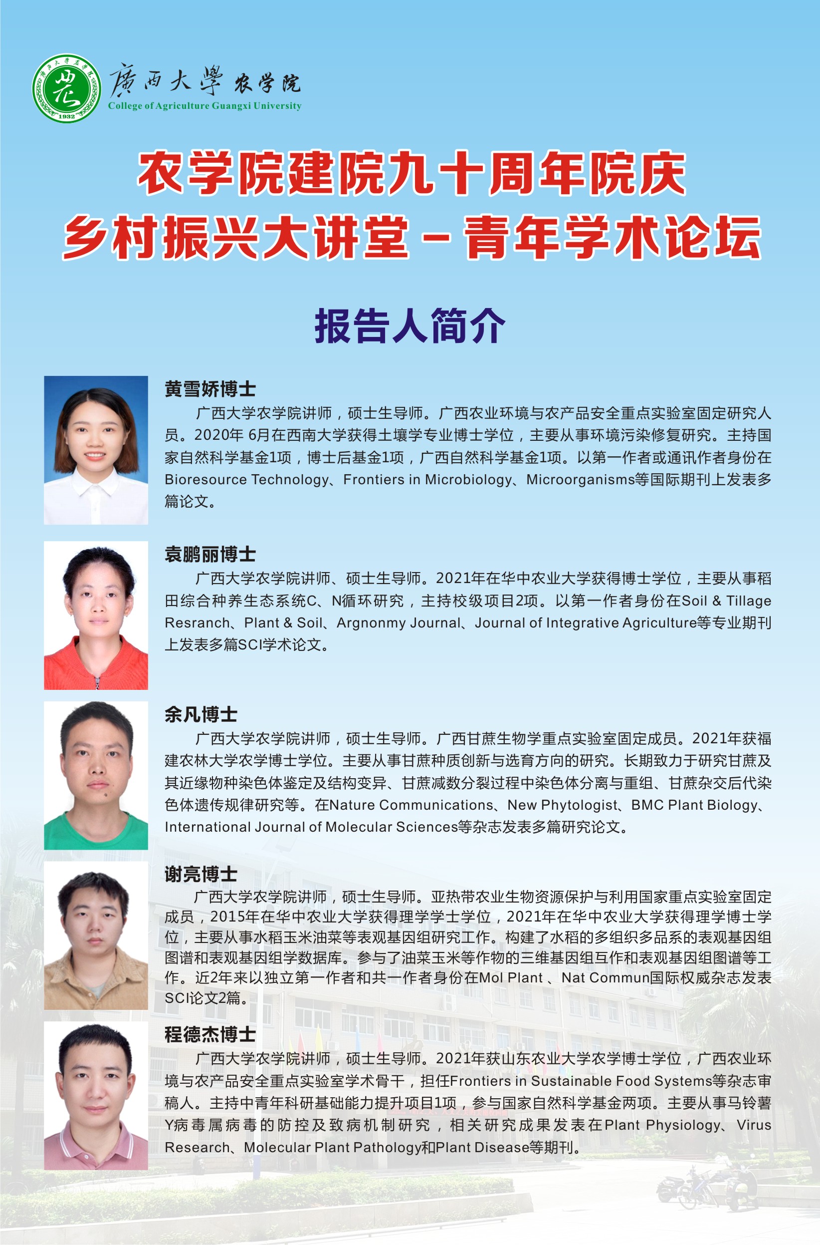 db真人体育官网建院九十周年院院庆乡村振兴大讲堂-青年学术论坛(报告人简介)
