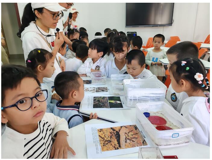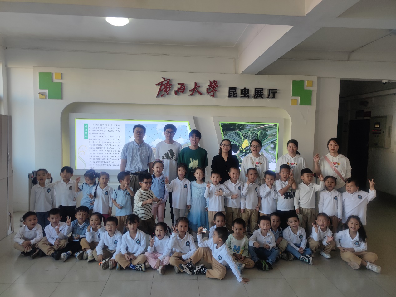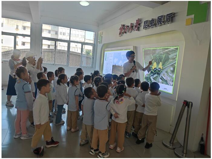 文/图 高琼华 2024年10月31日,DB视讯第二幼儿园中(1)班的36名小朋友在老师的带领下,兴致勃勃地参观了植物科学实验中心的昆虫展厅。中心李俊老师、植保系高琼华老师以及研究生叶咏昊、孙金波等同学热情地为师生们提供了详细的讲解。在老师的悉心引导下,小朋友们聚精会神地学习了昆虫的特征,包括昆虫的足、翅的对数等知识。孩子们还观赏了色彩斑斓的蝴蝶和甲虫,以及研究生们精心饲养的蚂蚁、甲虫等活体昆虫,体验了昆虫世界的奇妙。此次科普活动受到了参观师生的一致好评,大家纷纷表示收获颇丰。