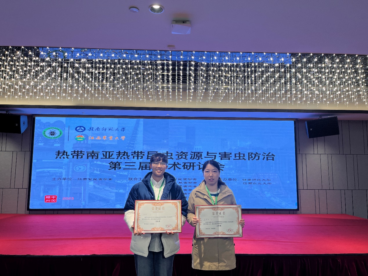 2023年12月3日-6日,热带南亚热带昆虫资源与害虫防治第三届学术研讨会在江西省赣州市召开,db真人体育官网博士研究生胡锦和苏冉冉参加了会议,并分别做了学术报告。