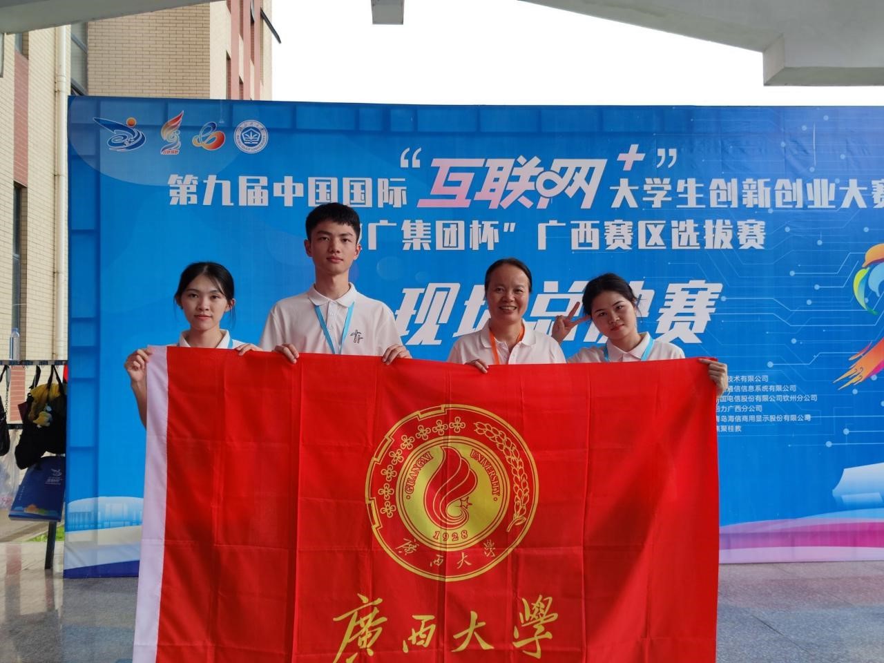 2023年8月,由李素丽老师带队db真人体育官网张德梅、朱水芳、梁中豪同学参加了第九届中国国际“互联网+”老员工创新创业大赛,并获得了广西赛区金奖。