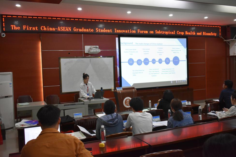 On November 9th, the First China-ASEAN Graduate Student Innovation Forum on Subtropical Crop Health and Biosafety was successfully held at Guangxi university. The forum, hosted by Guangxi University, focused on the theme of "Crop Health and Biosafety" with the aim of constructing a high-level academic exchange platform and fostering interdisciplinary integration. The forum brought together graduate students from Guangxi University, Beibu Gulf University, Vietnam National University, Universiti Tun Hussein Onn Malaysia, Kasetsart University, and other domestic and international universities. Through expert keynote speeches, graduate student presentations, and poster displays, they engaged in in-depth discussions on common issues such as pest and disease control in subtropical crops and bio-breeding. The successful organization of the forum not only enhanced the academic atmosphere among graduate students, but also provided a platform for young scholars to showcase their research achievements and deepen international exchanges. 王小云